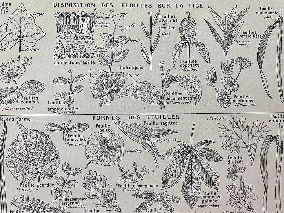 Ancienne illustration sur les feuilles